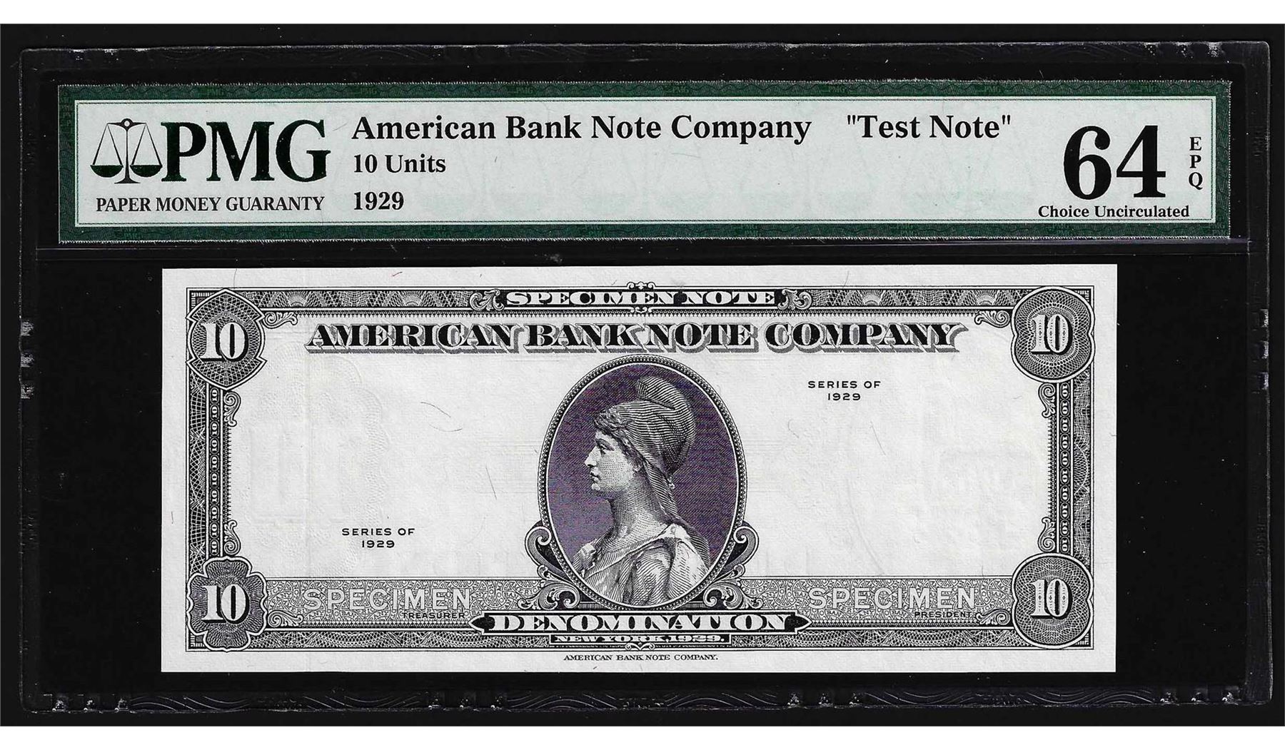 1929 American Bank Note Company Test Note 10 Units PMG 64EPQ