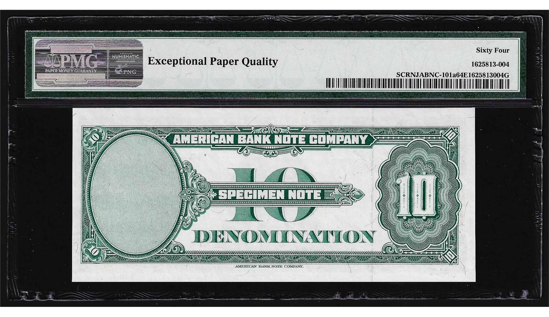 1929 American Bank Note Company Test Note 10 Units PMG 64EPQ