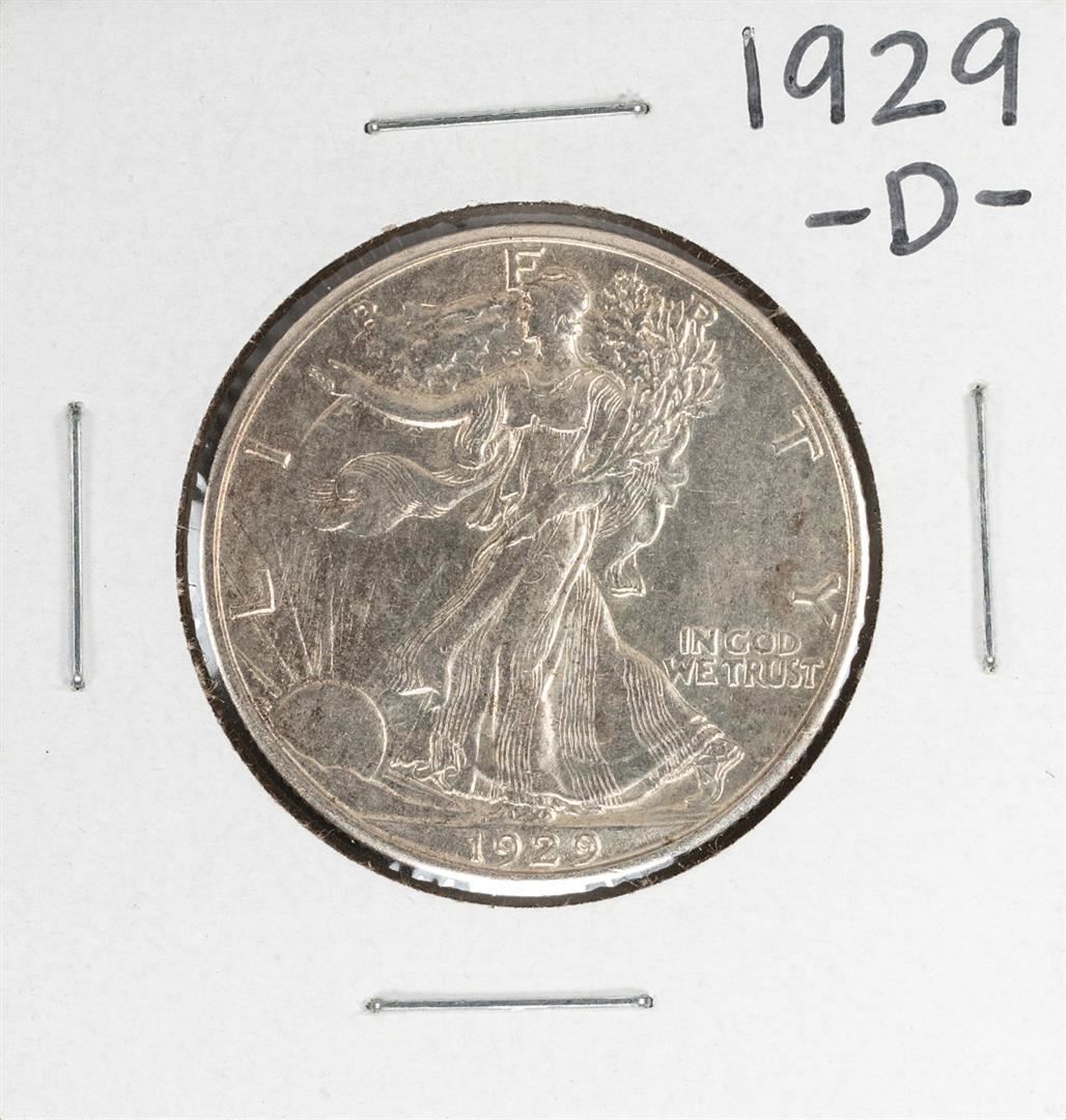 One 1929-D Walking Liberty Half Dollar Coin.