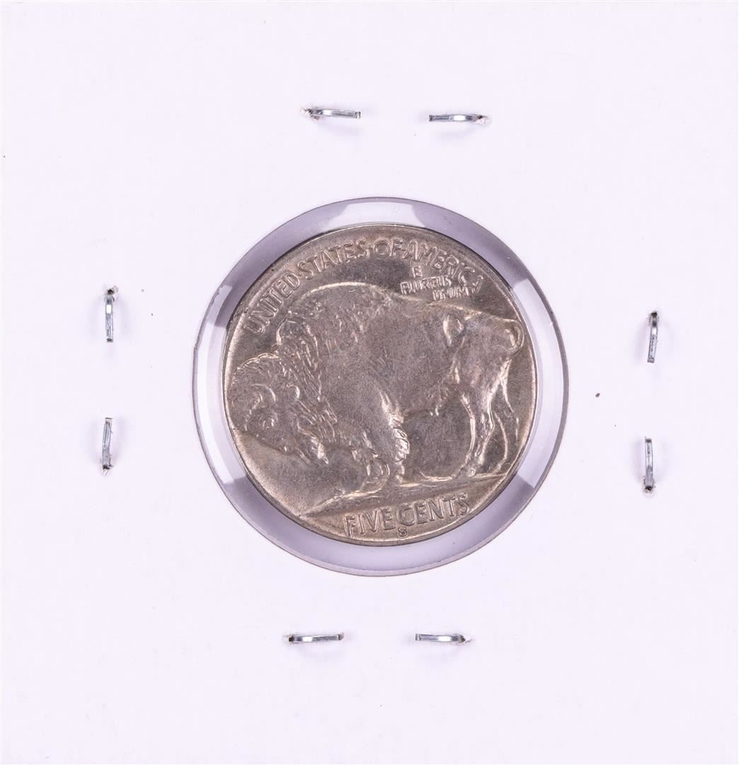 One 1929-S Buffalo Nickel Coin.