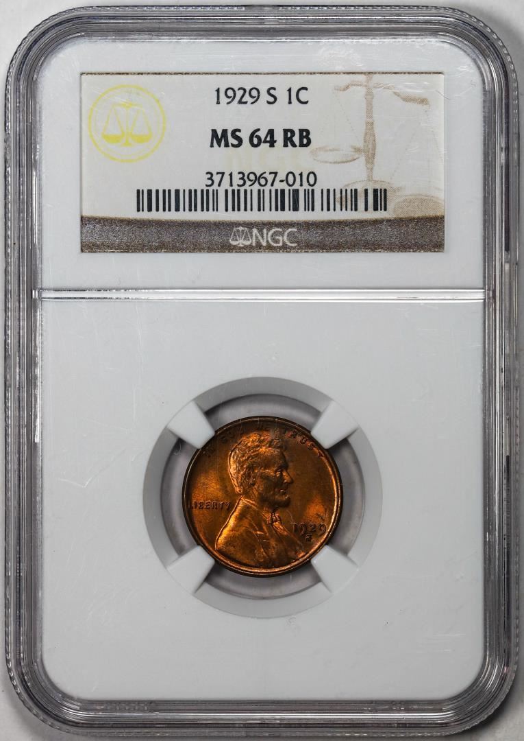 One 1929-S Lincoln Wheat Cent Coin NGC MS64RB. NGC Certified.