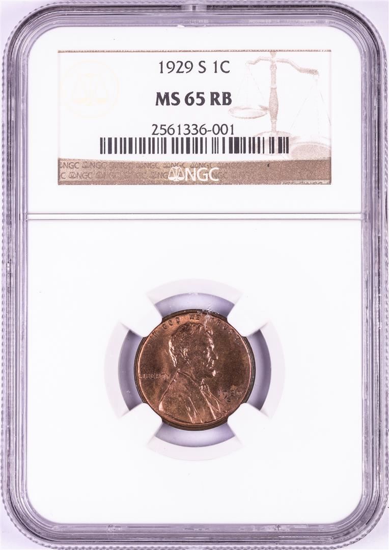 One 1929-S Lincoln Wheat Cent Coin NGC MS65RB. NGC Certified.