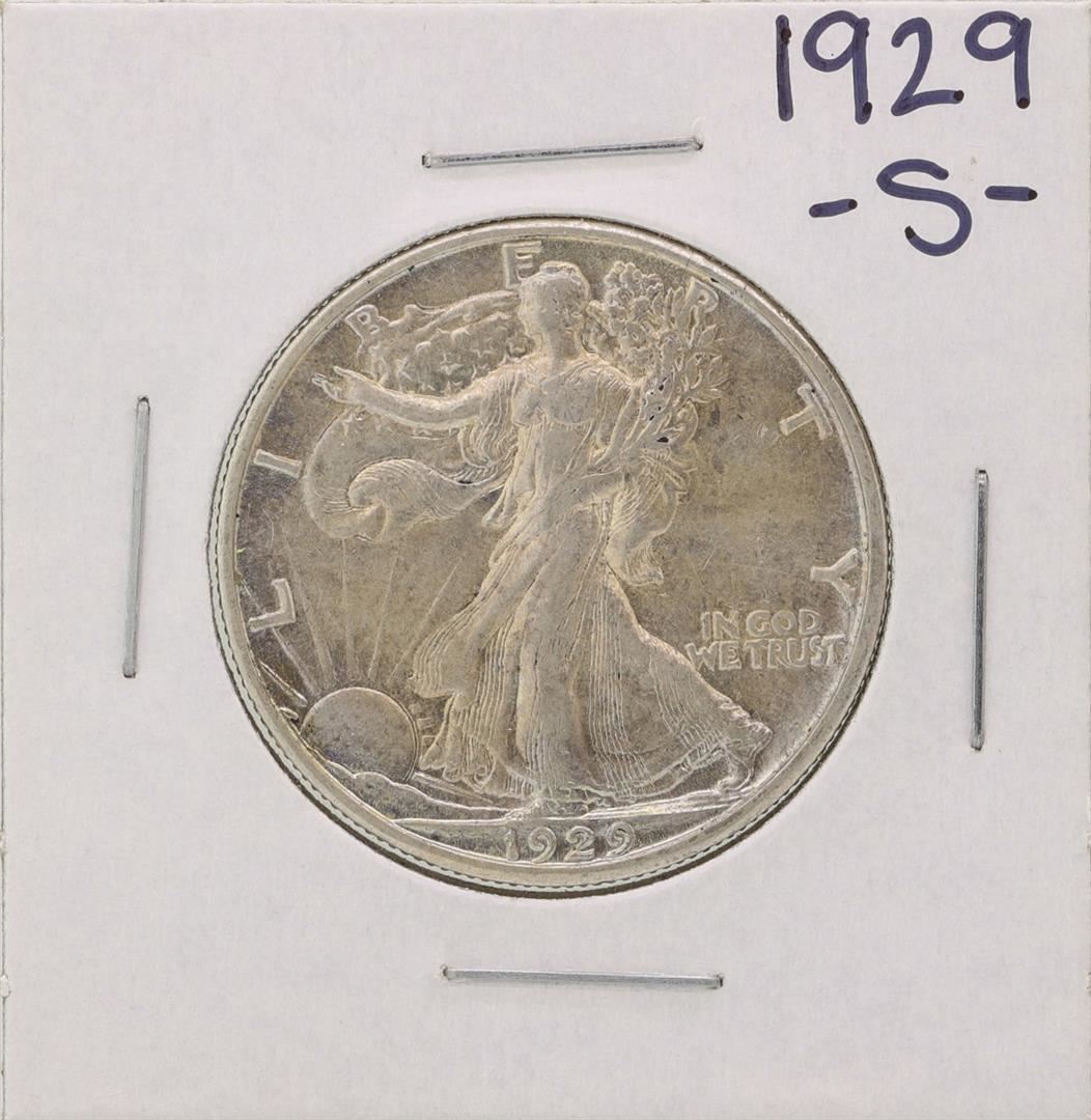 One 1929-S Walking Liberty Half Dollar Coin.