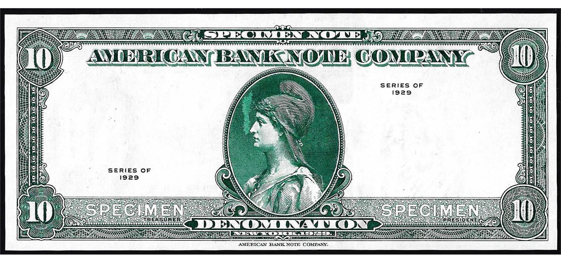 One 1929 Ten Unit American Bank Note Company Test Note.