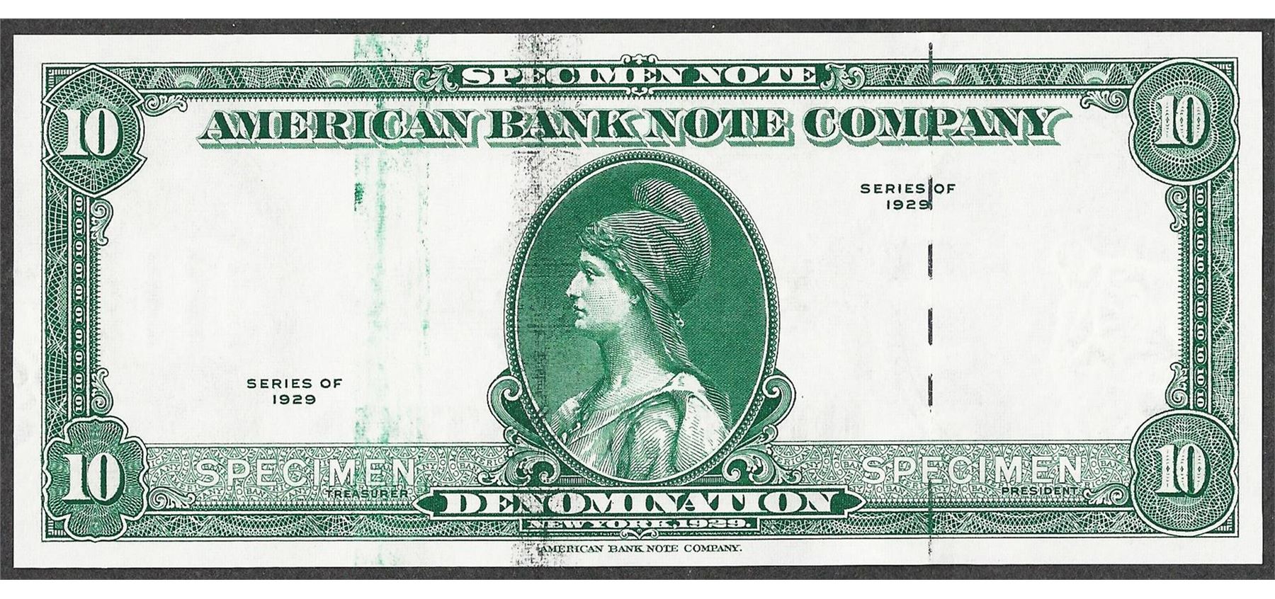 1929 Ten Unit American Bank Note Test Note As Made Ink Smear ERROR