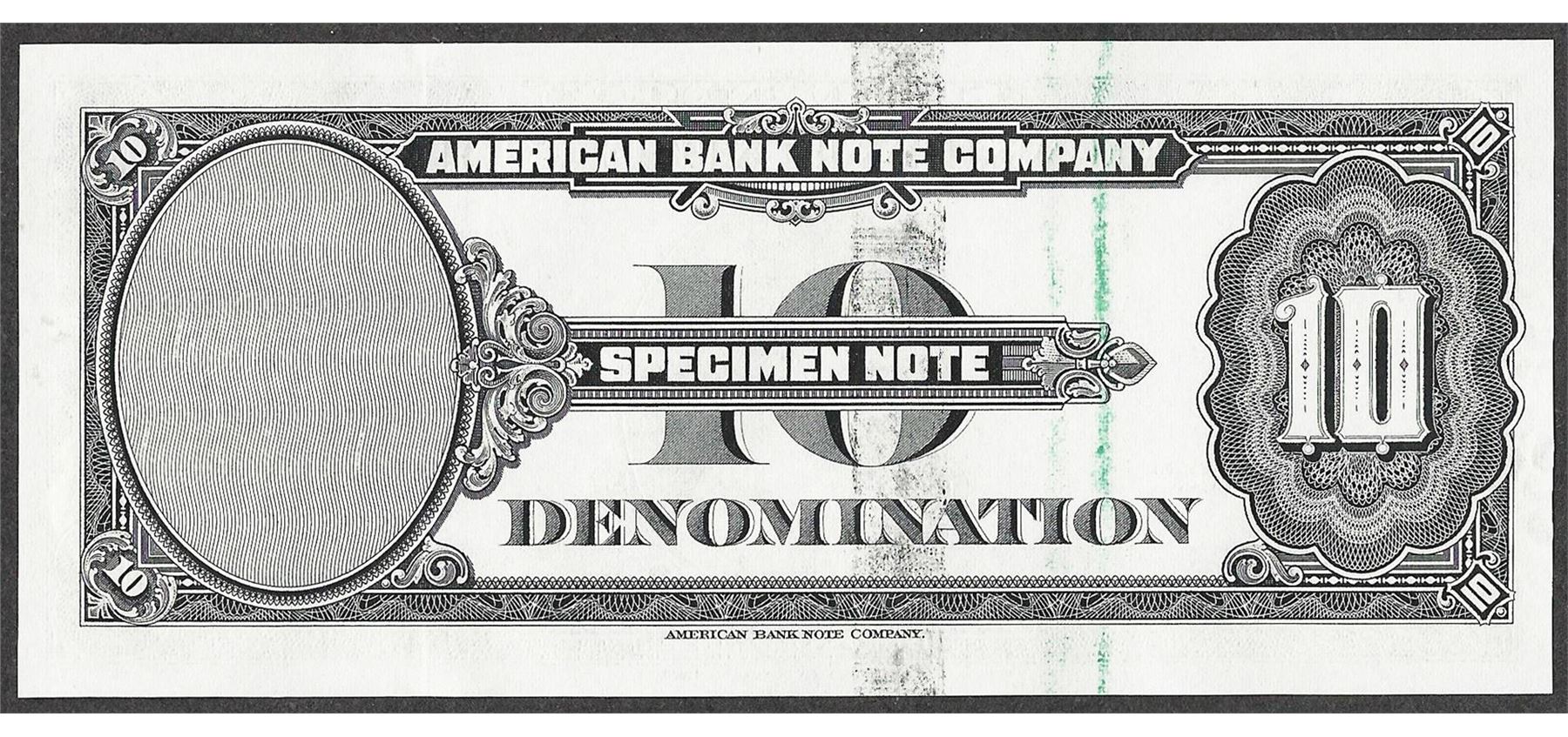 One 1929 Ten Unit American Bank Note Test Note As Made Ink Smear ERROR.