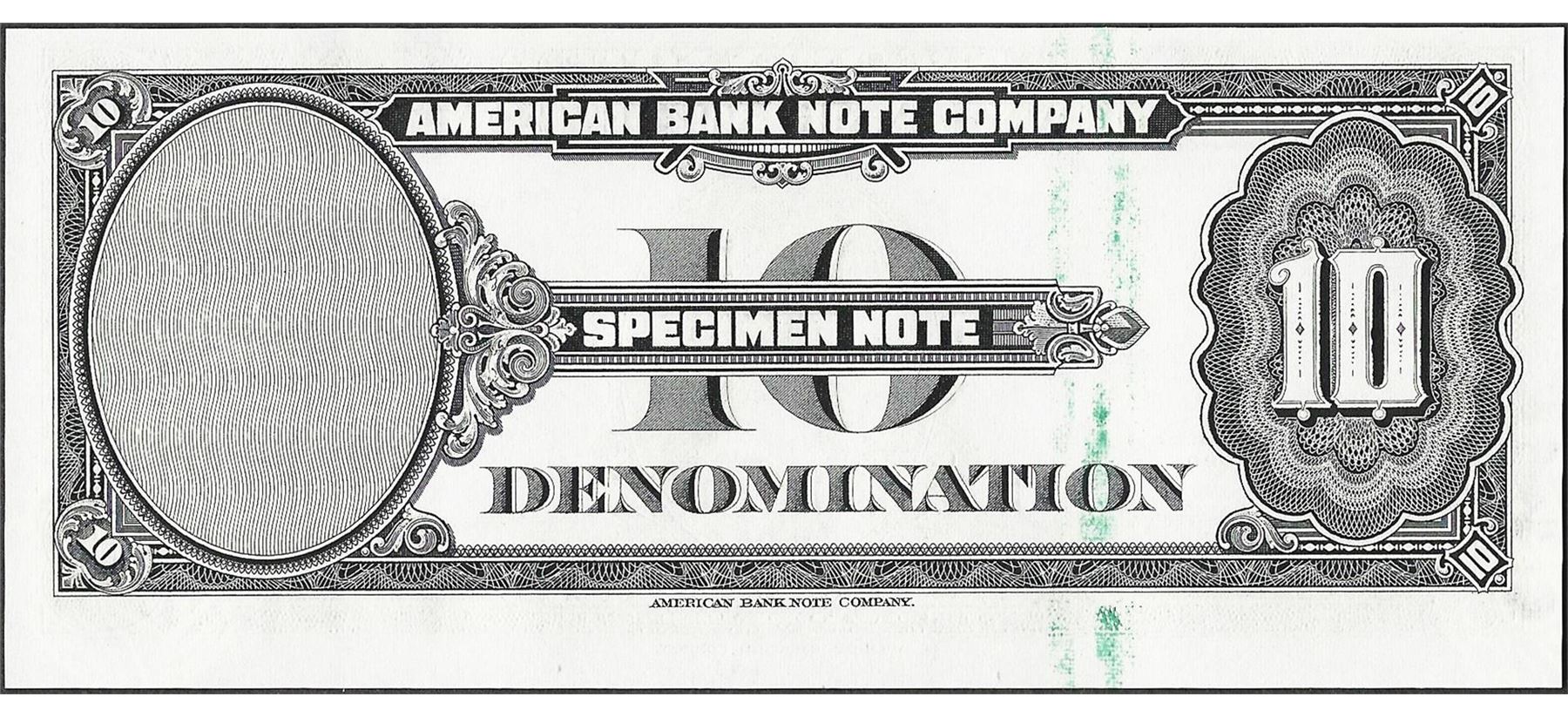 One 1929 Ten Unit American Bank Note Test Note As Made Ink Smear ERROR.