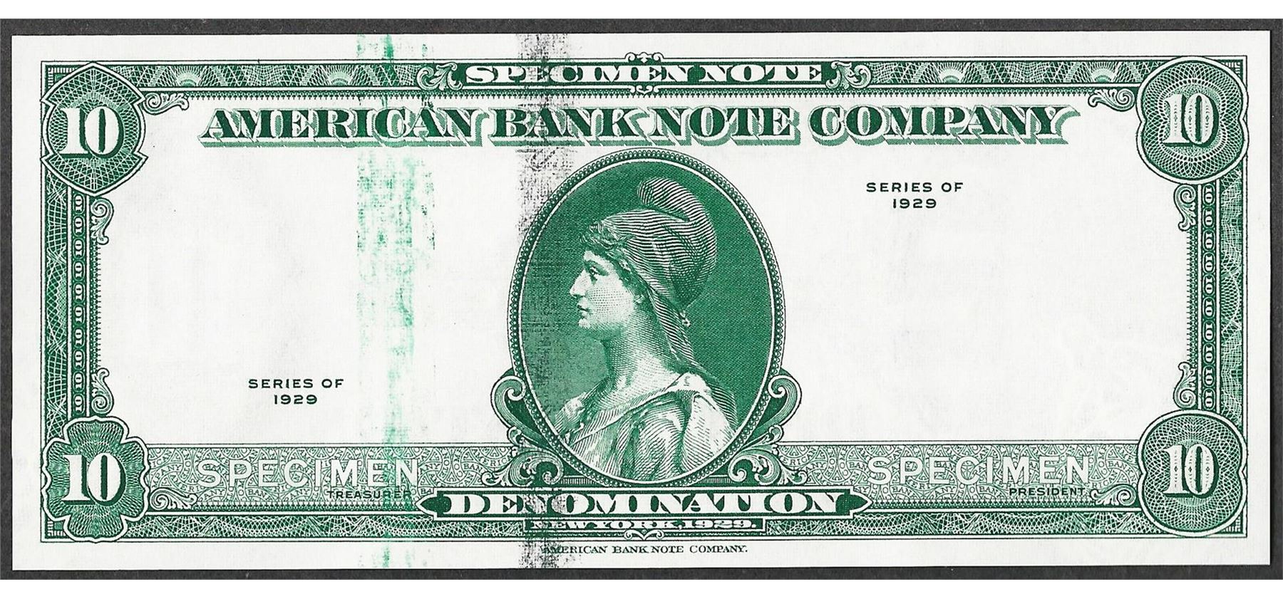 1929 Ten Unit American Bank Note Test Note As Made Ink Smear ERROR