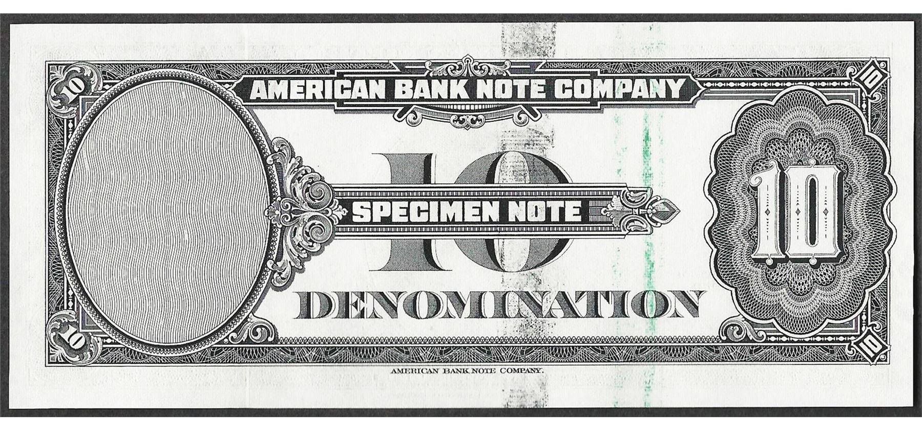 1929 Ten Unit American Bank Note Test Note As Made Ink Smear ERROR