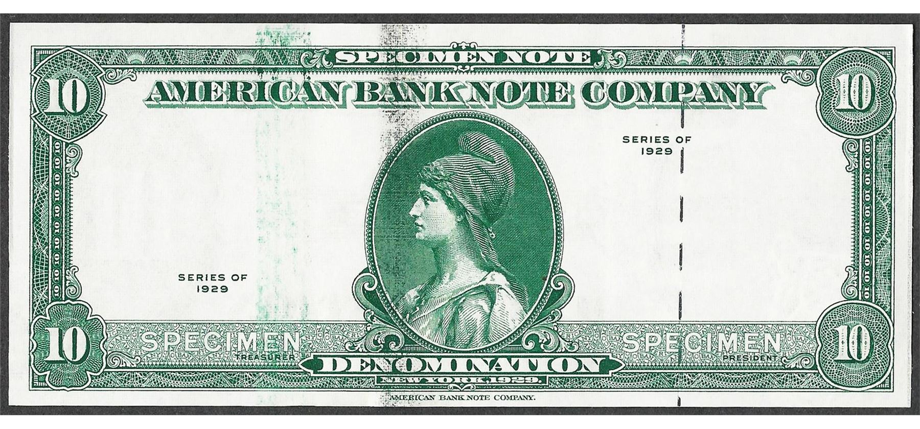 One 1929 Ten Unit American Bank Note Test Note As Made Ink Smear ERROR.