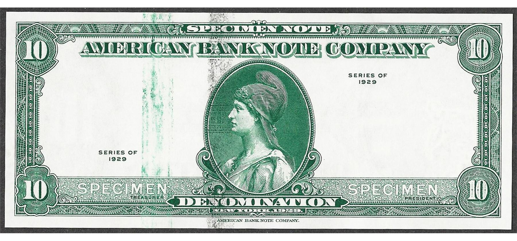 One 1929 Ten Unit American Bank Note Test Note As Made Ink Smear ERROR.