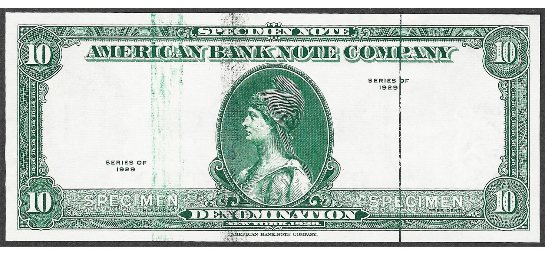 One 1929 Ten Unit American Bank Note Test Note As Made Ink Smear ERROR.