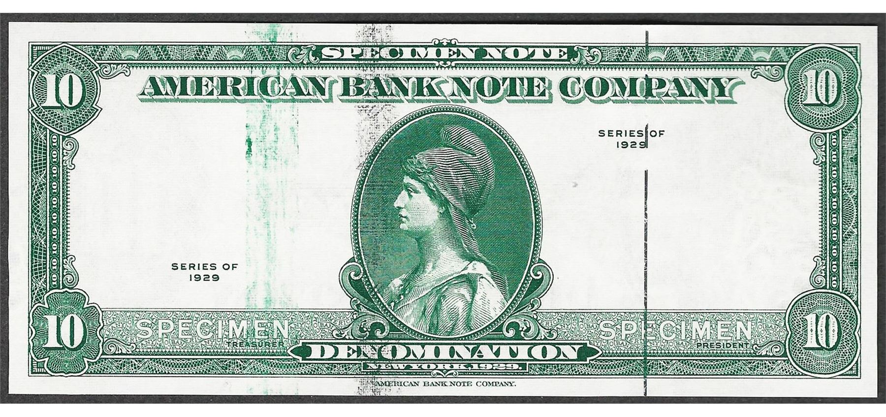 1929 Ten Unit American Bank Note Test Note As Made Ink Smear ERROR