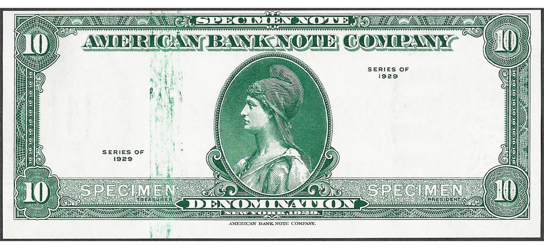 1929 Ten Unit American Bank Note Test Note As Made Ink Smear ERROR