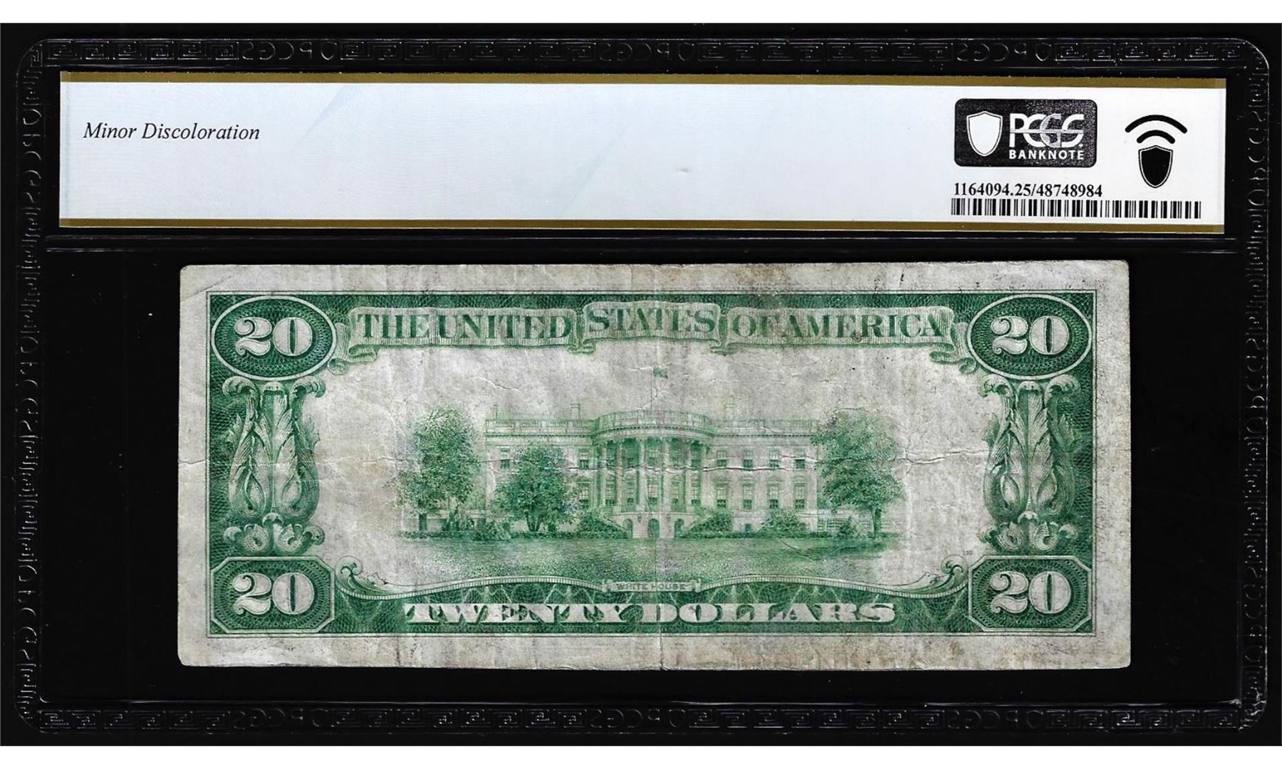 One 1929 Ty.2 $20 Clifton, New Jersey CH #12690 National Currency Note PCGS Very Fine 25. PCGS Graded.