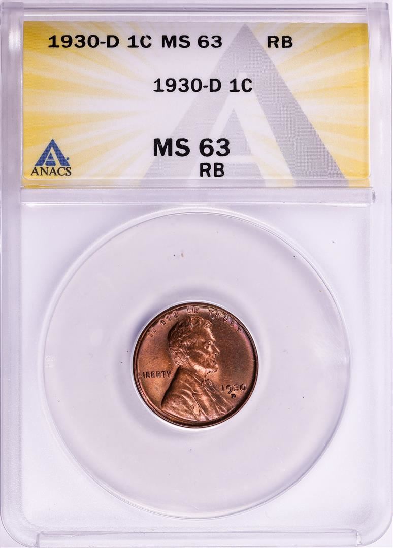 One 1930-D Lincoln Wheat Cent Coin ANACS MS63 RB. ANACS Certified.