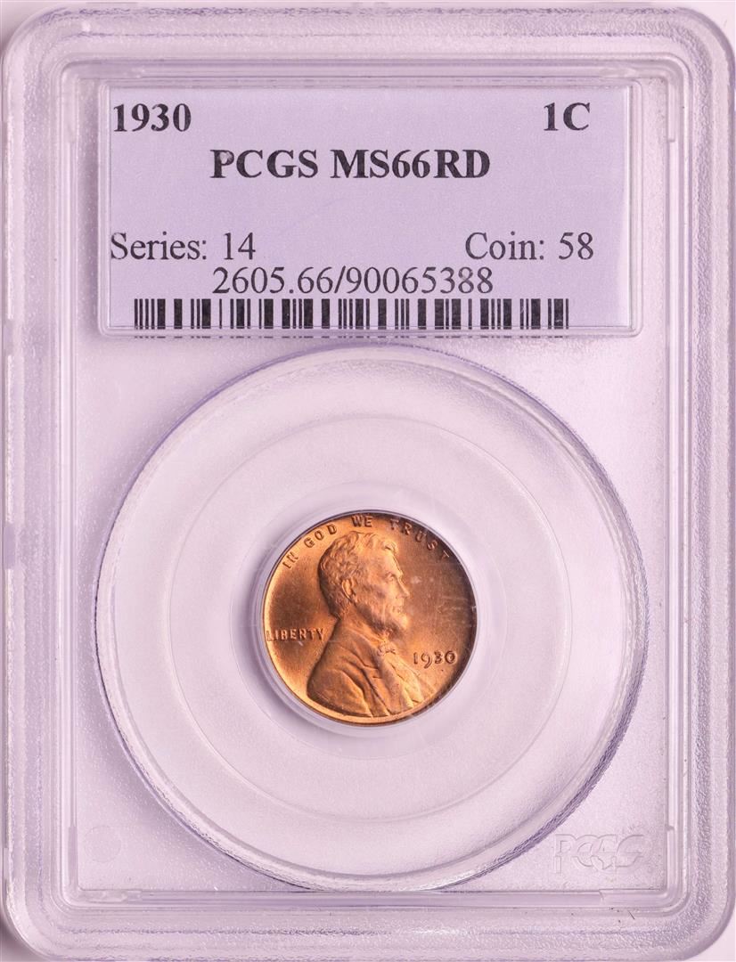 One 1930 Lincoln Wheat Cent Coin PCGS MS66RD. PCGS Graded.