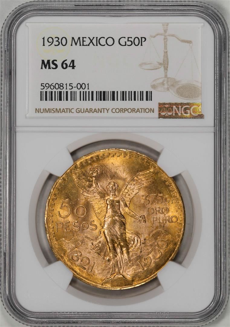 One 1930 Mexico 50 Pesos Gold Coin NGC MS64. NGC Certified.