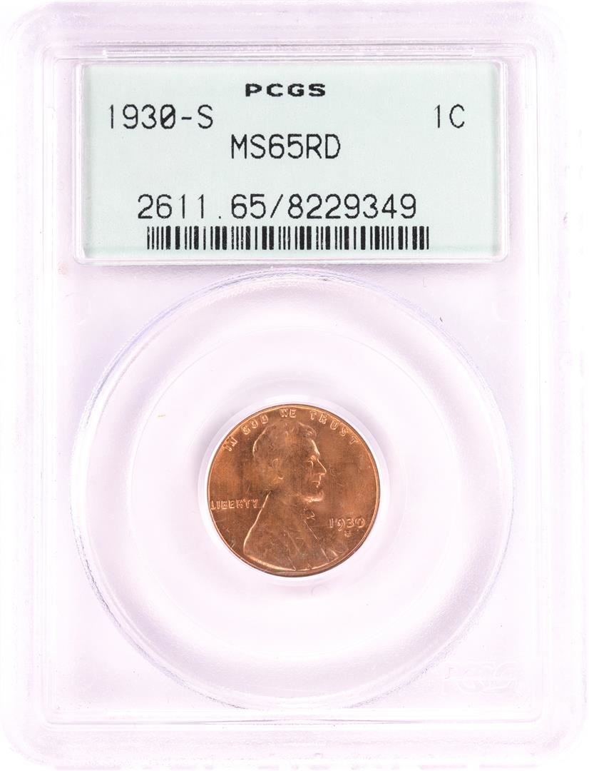 1930-S Lincoln Wheat Cent Coin PCGS MS65RD Old Green Holder
