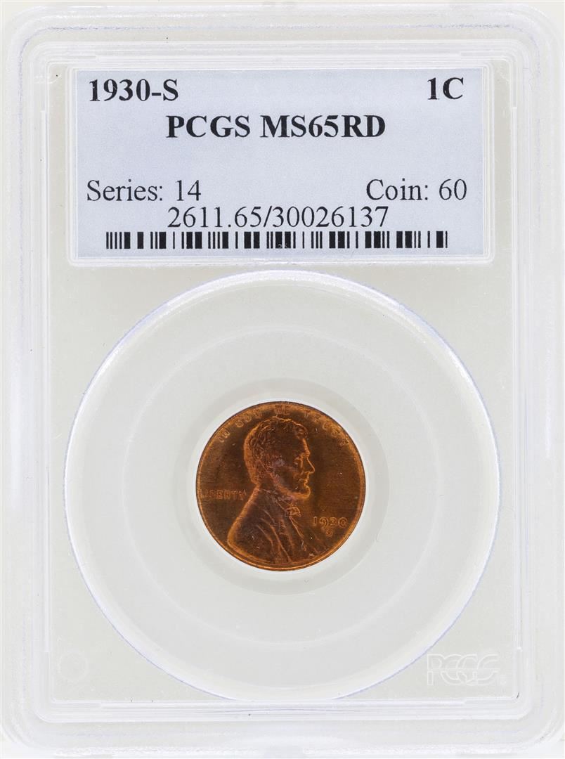 One 1930-S Lincoln Wheat Penny Coin PCGS MS65RD. PCGS Graded.