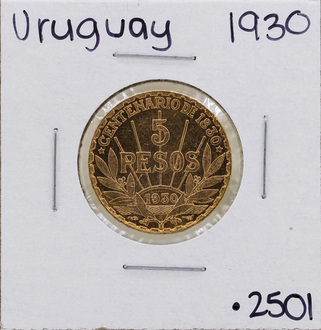 One 1930 Uruguay 5 Pesos Gold Coin.