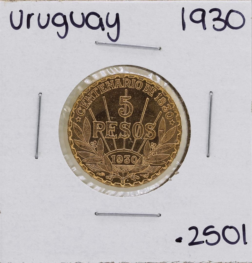 One 1930 Uruguay 5 Pesos Gold Coin.