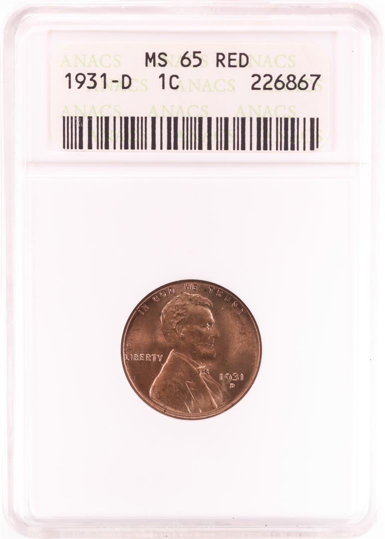 One 1931-D Lincoln Head Cent Coin ANACS MS65RD. ANACS Certified.