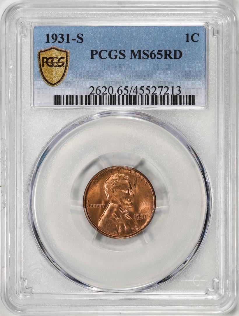One 1931-S Lincoln Wheat Cent Coin PCGS MS65RD. PCGS Graded.