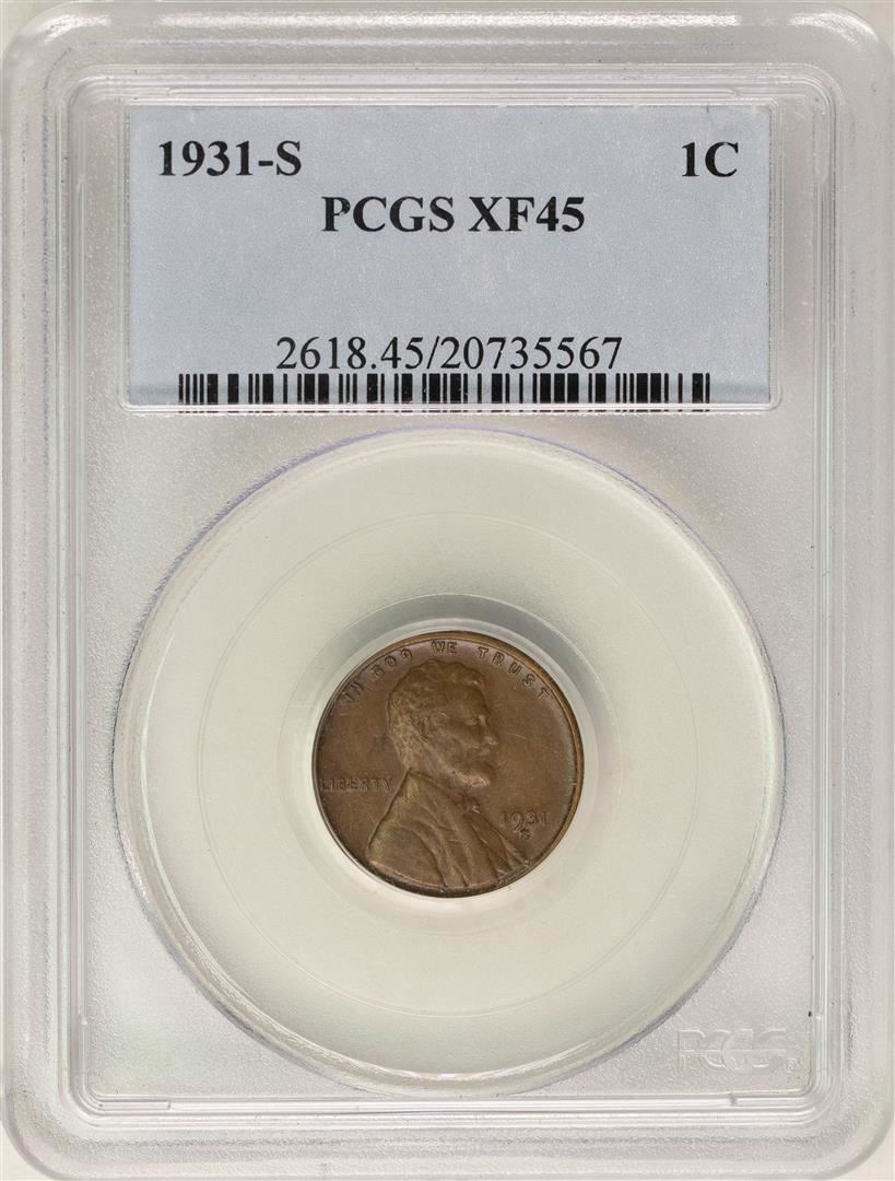 One 1931-S Lincoln Wheat Cent Coin PCGS XF45. PCGS Graded.