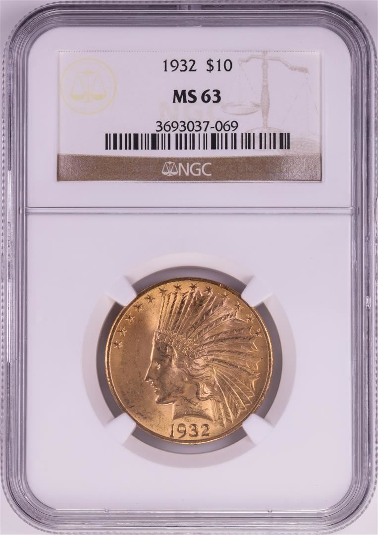 1932 $10 Indian Head Eagle Gold Coin NGC MS63