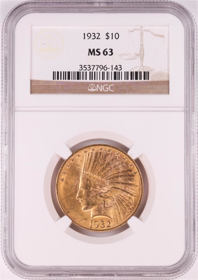 One 1932 $10 Indian Head Eagle Gold Coin NGC MS63. NGC Certified.