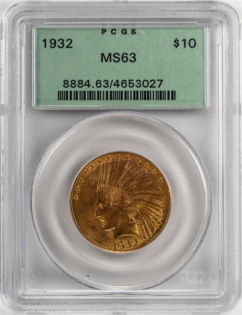 One 1932 $10 Indian Head Eagle Gold Coin PCGS MS63 OGH. PCGS Graded.