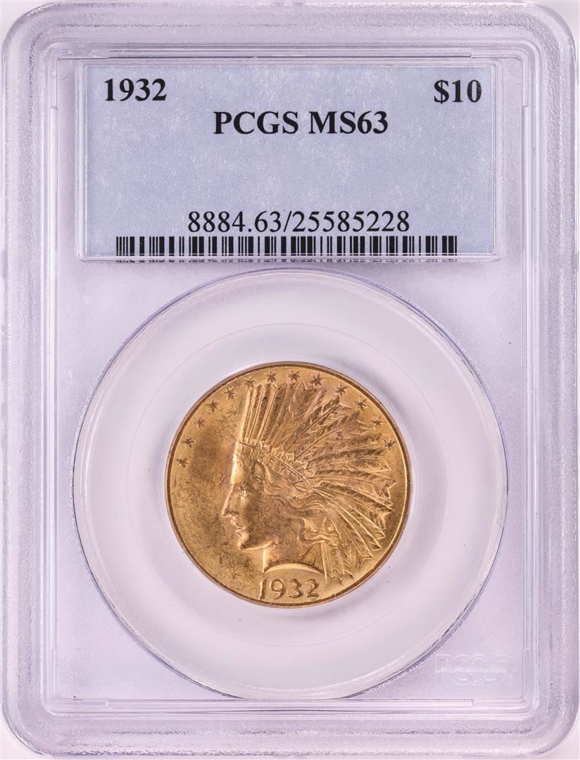 One 1932 $10 Indian Head Eagle Gold Coin PCGS MS63. PCGS Graded.