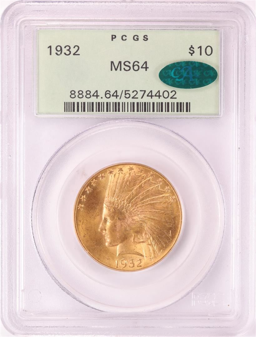 One 1932 $10 Indian Head Eagle Gold Coin PCGS MS64 CAC Old Green Holder. PCGS Graded.