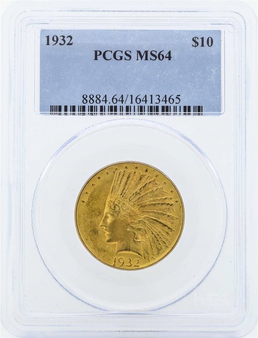 One 1932 $10 Indian Head Eagle Gold Coin PCGS MS64. PCGS Graded.