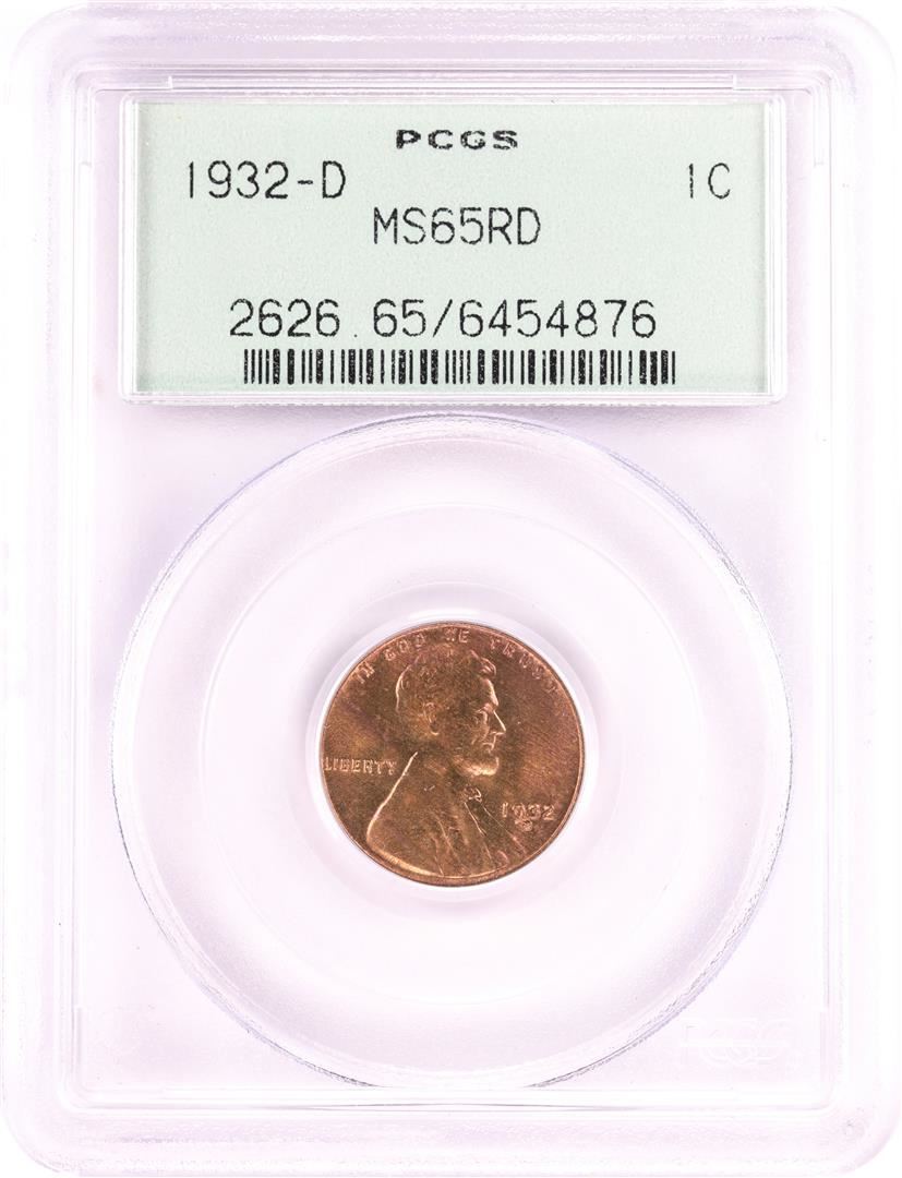 One 1932-D Lincoln Wheat Cent Coin PCGS MS65RD Old Green Holder. PCGS Graded.