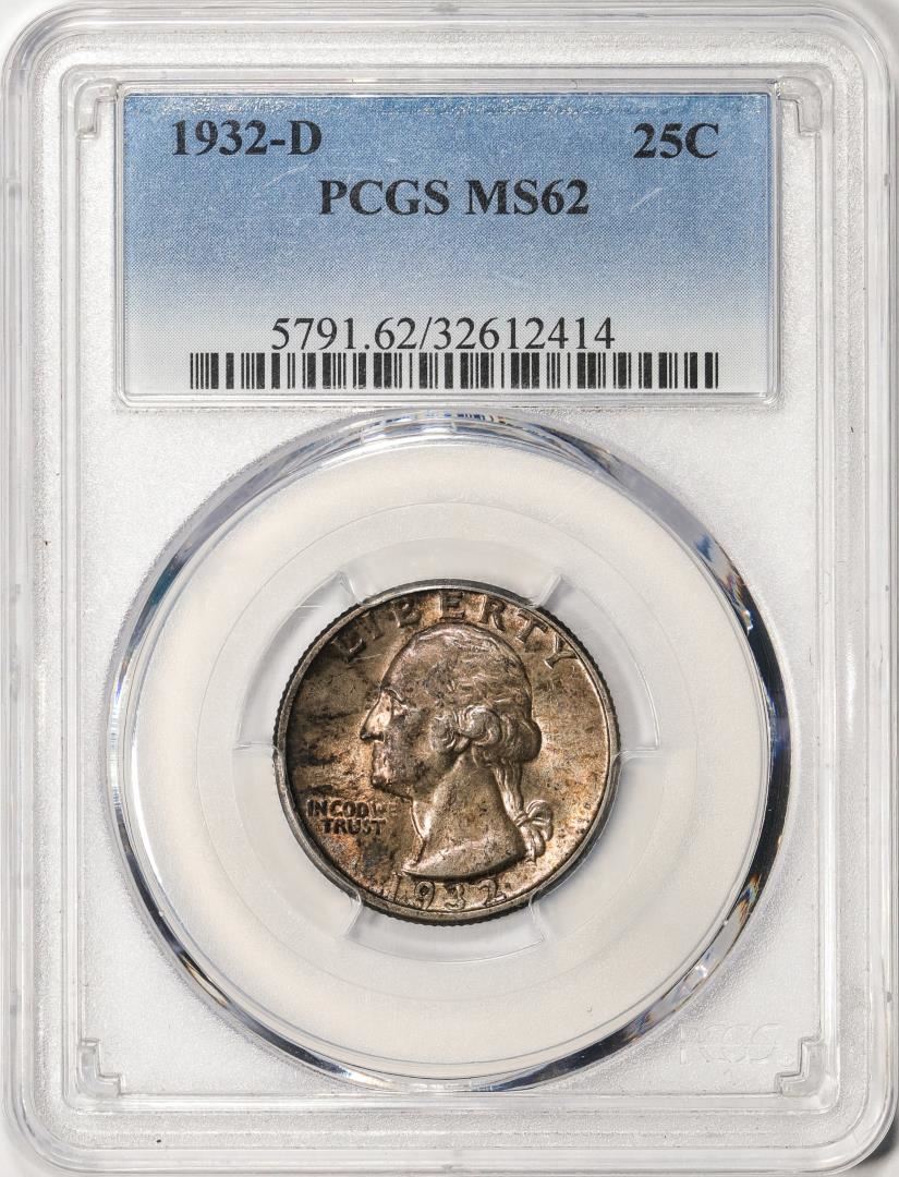 One 1932-D Washington Quarter Coin PCGS MS62. PCGS Graded.
