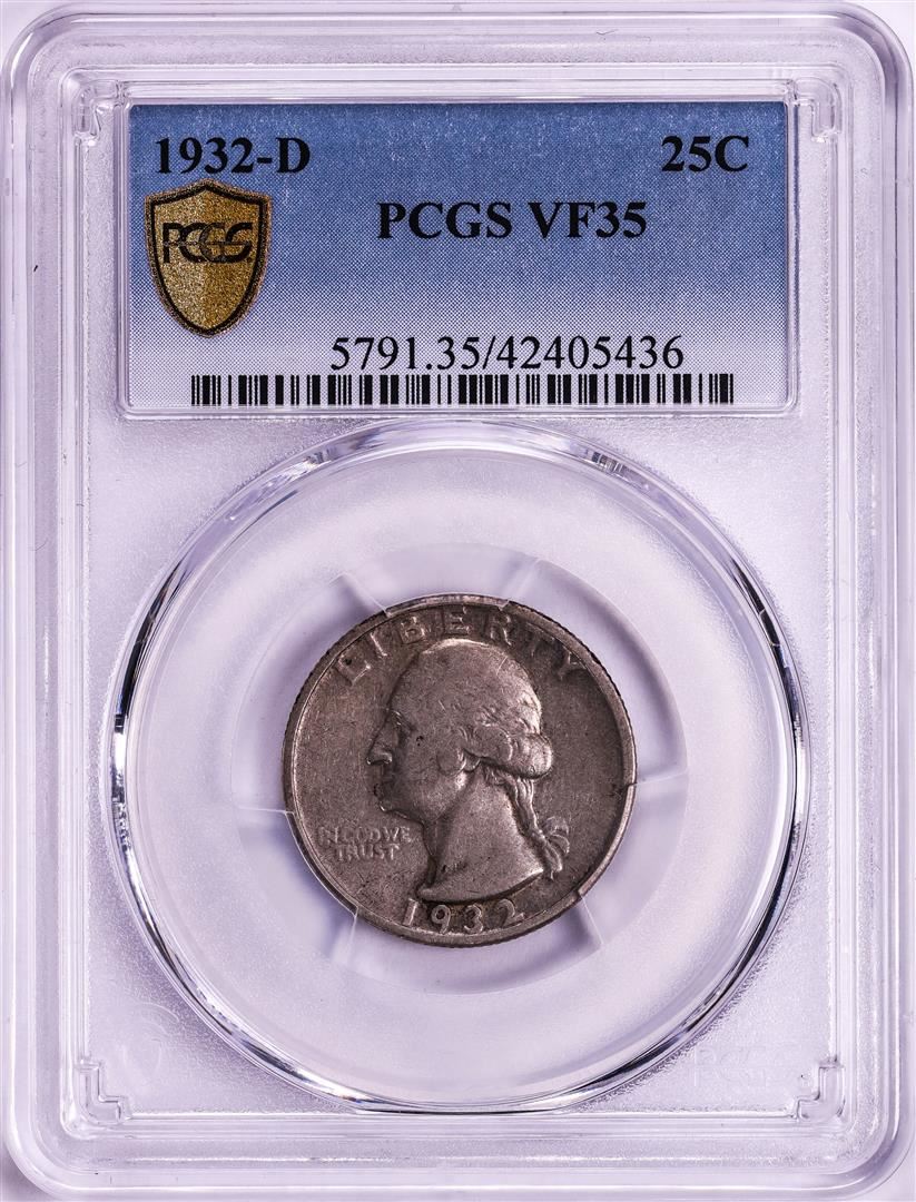 One 1932-D Washington Quarter Coin PCGS VF35. PCGS Graded.