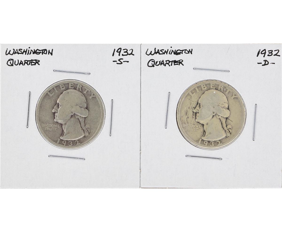 One 1932-S & 1932-D Washington Silver Quarter Coins.