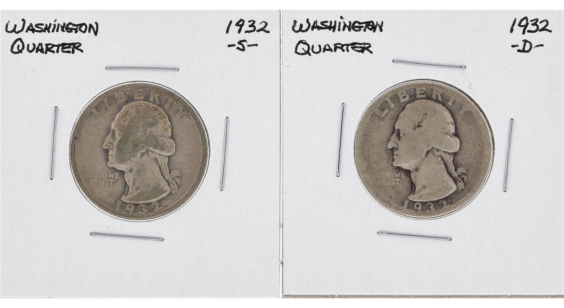 One 1932-S & 1932-D Washington Silver Quarter Coins.