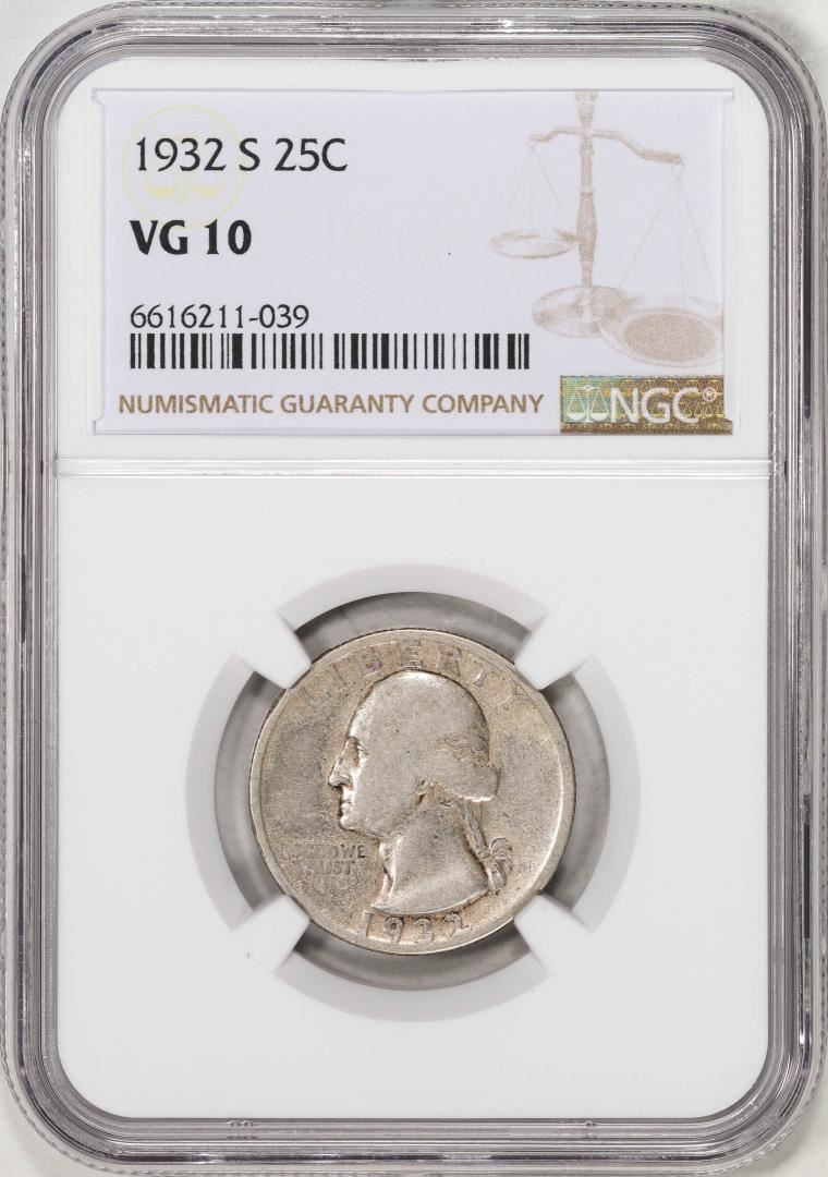 One 1932-S Washington Quarter Coin NGC VG10. NGC Certified.