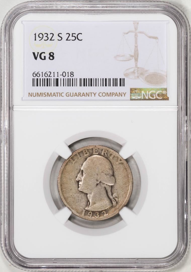 One 1932-S Washington Quarter Coin NGC VG8. NGC Certified.