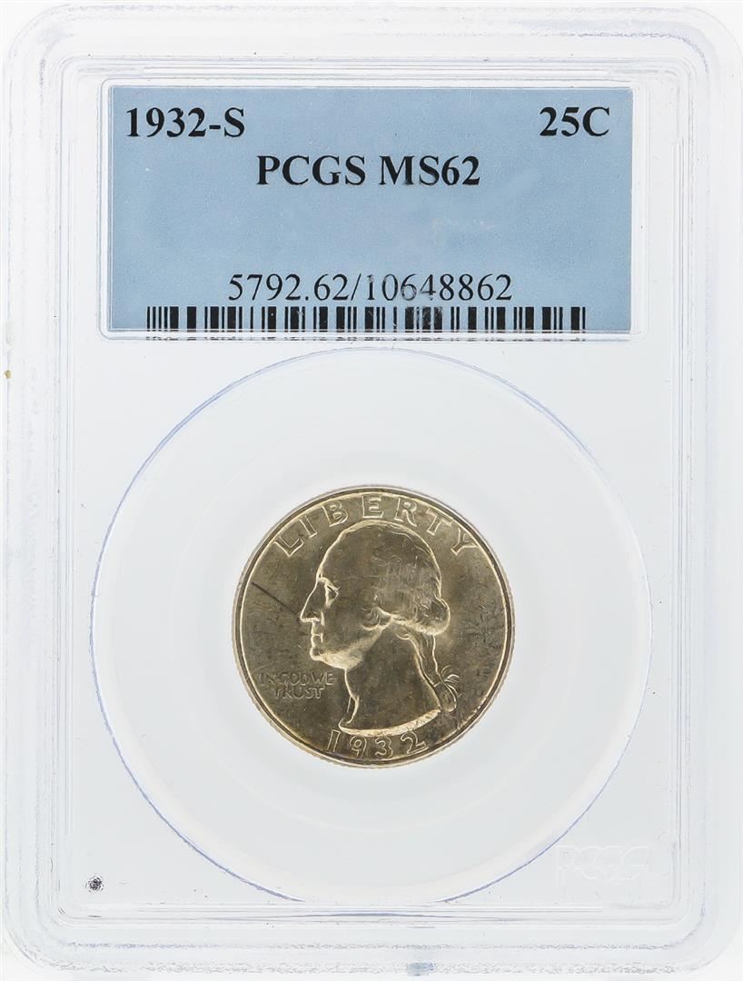 One 1932-S Washington Quarter PCGS Graded MS62. PCGS Graded.