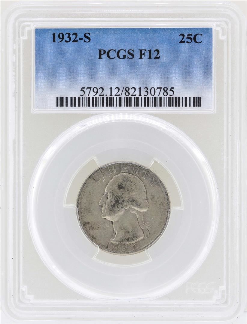 One 1932-S Washington Quarter Silver Coin PCGS F12. PCGS Graded.