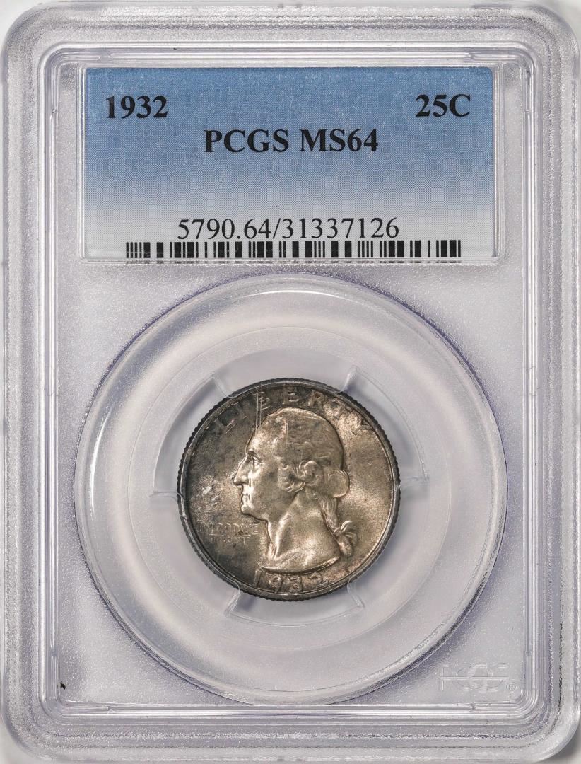 One 1932 Washington Quarter Coin PCGS MS64. PCGS Graded.