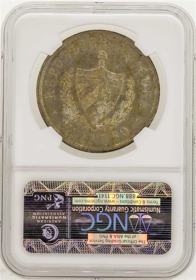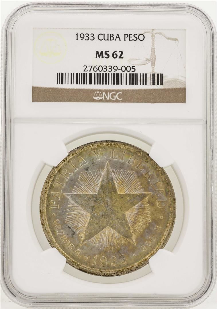 One 1933 Cuba Peso Silver Coin NGC MS62. NGC Certified.