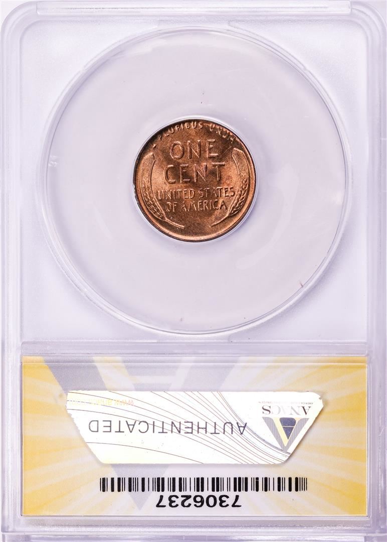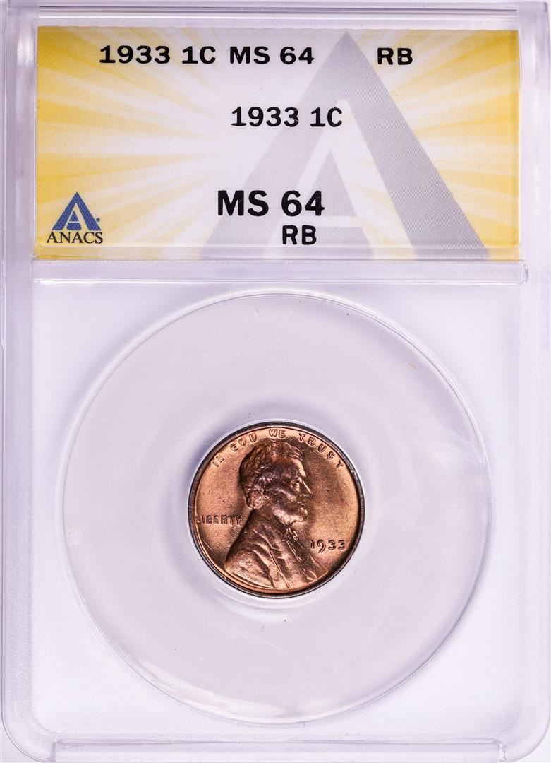 One 1933 Lincoln Wheat Cent Coin ANACS MS64 RB. ANACS Certified.