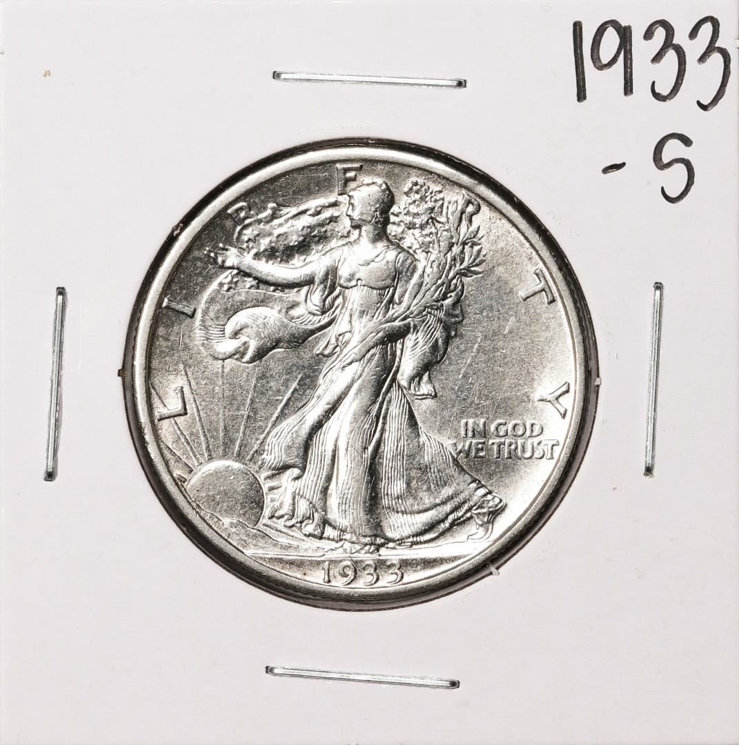 One 1933-S Walking Liberty Half Dollar Coin.