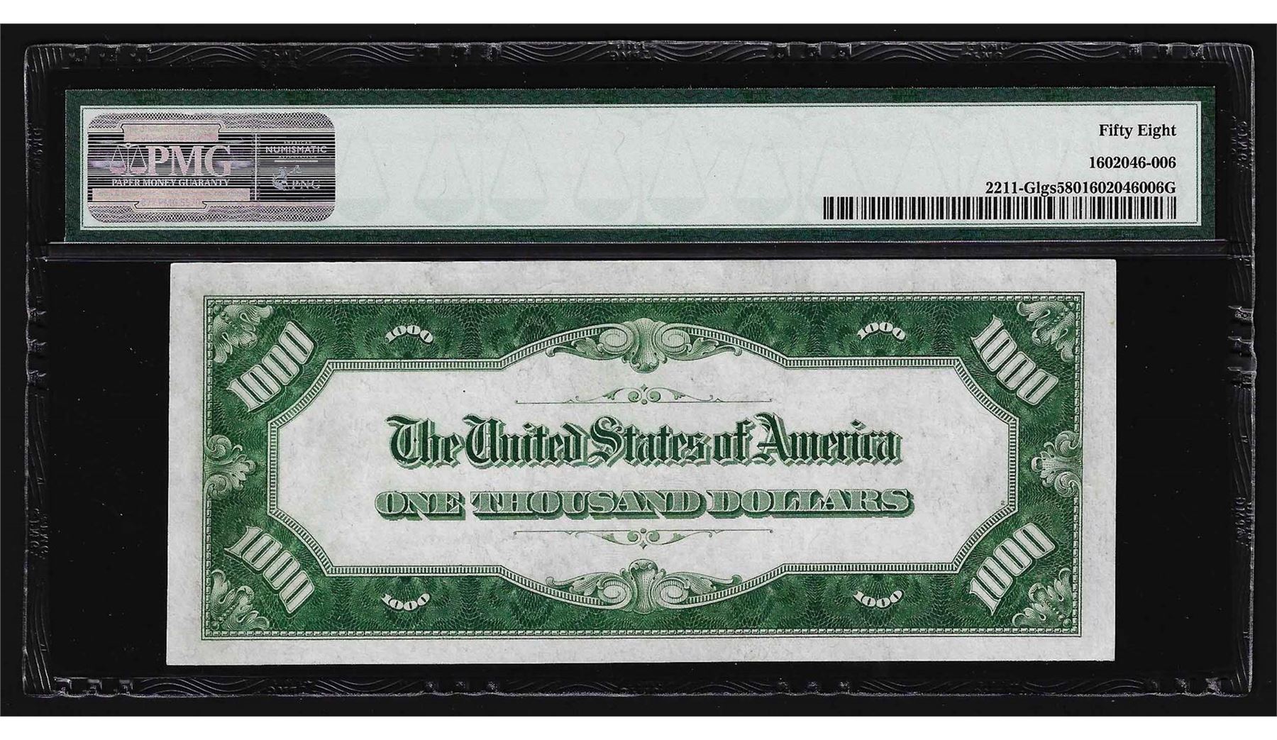 One 1934 $1,000 Federal Reserve Note Chicago Light Green Seal PMG Choice AU58. PMG Certified.
