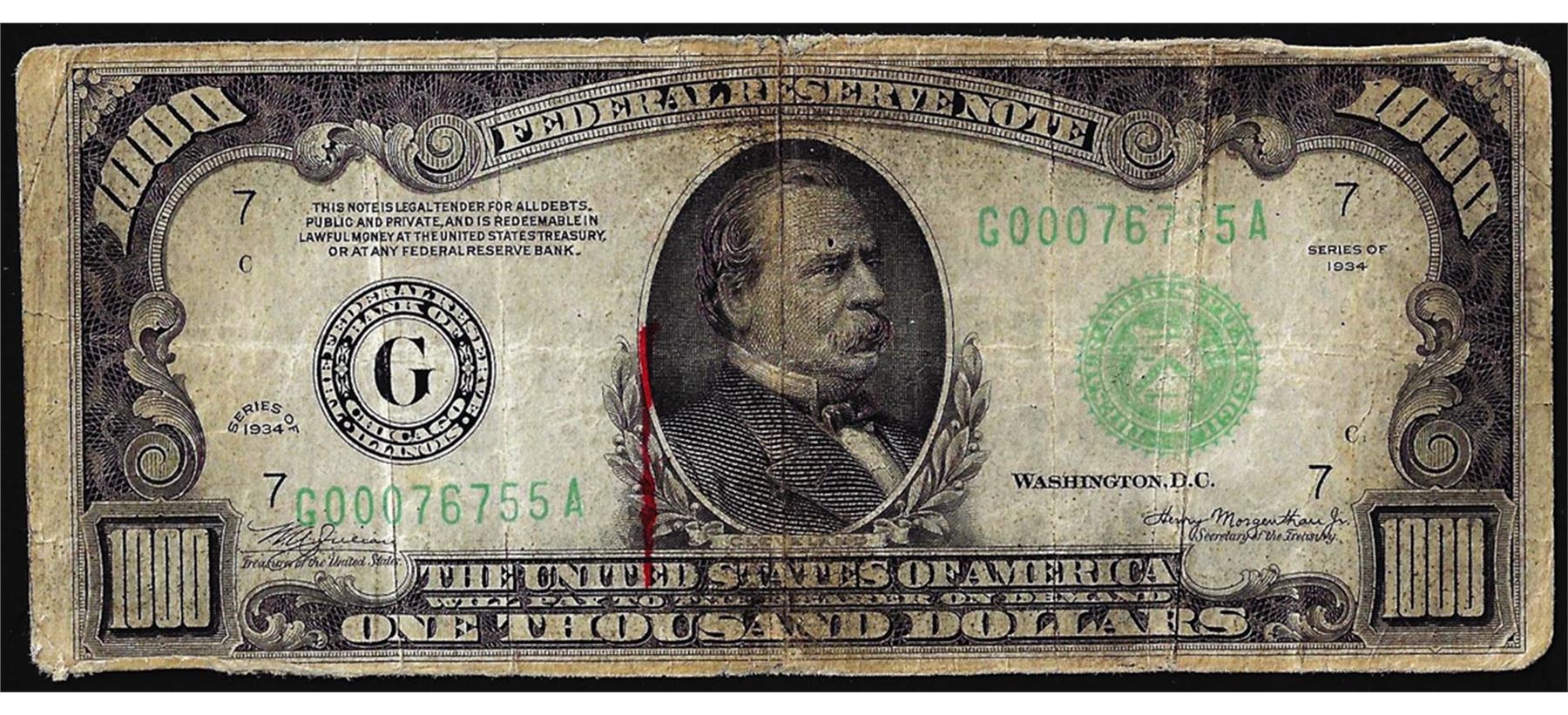 One 1934 $1,000 Federal Reserve Note Chicago.